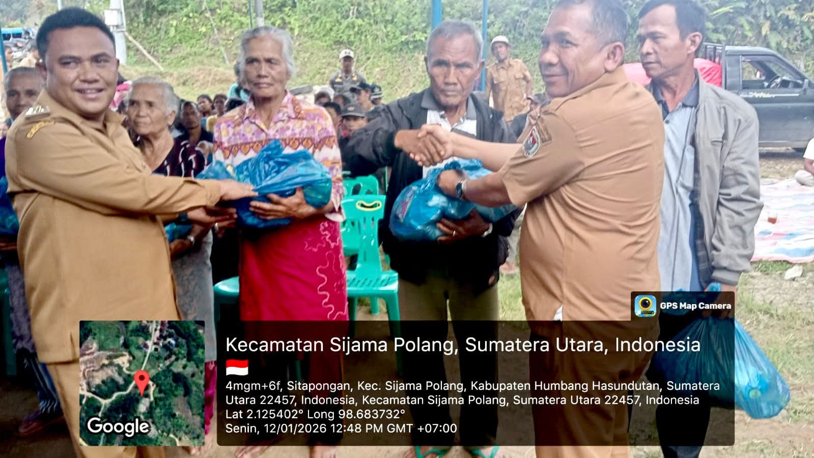 Humbahas | Lintas Rakyat – Pemerintah Kabupaten Humbang Hasundutan menyerahkan bantuan sembako kepada masyarakat terdampak bencana di Desa Sitapongan dan Desa Sanggaran I, Kecamatan Sijamapolang, pada Senin, (12/1/2026).