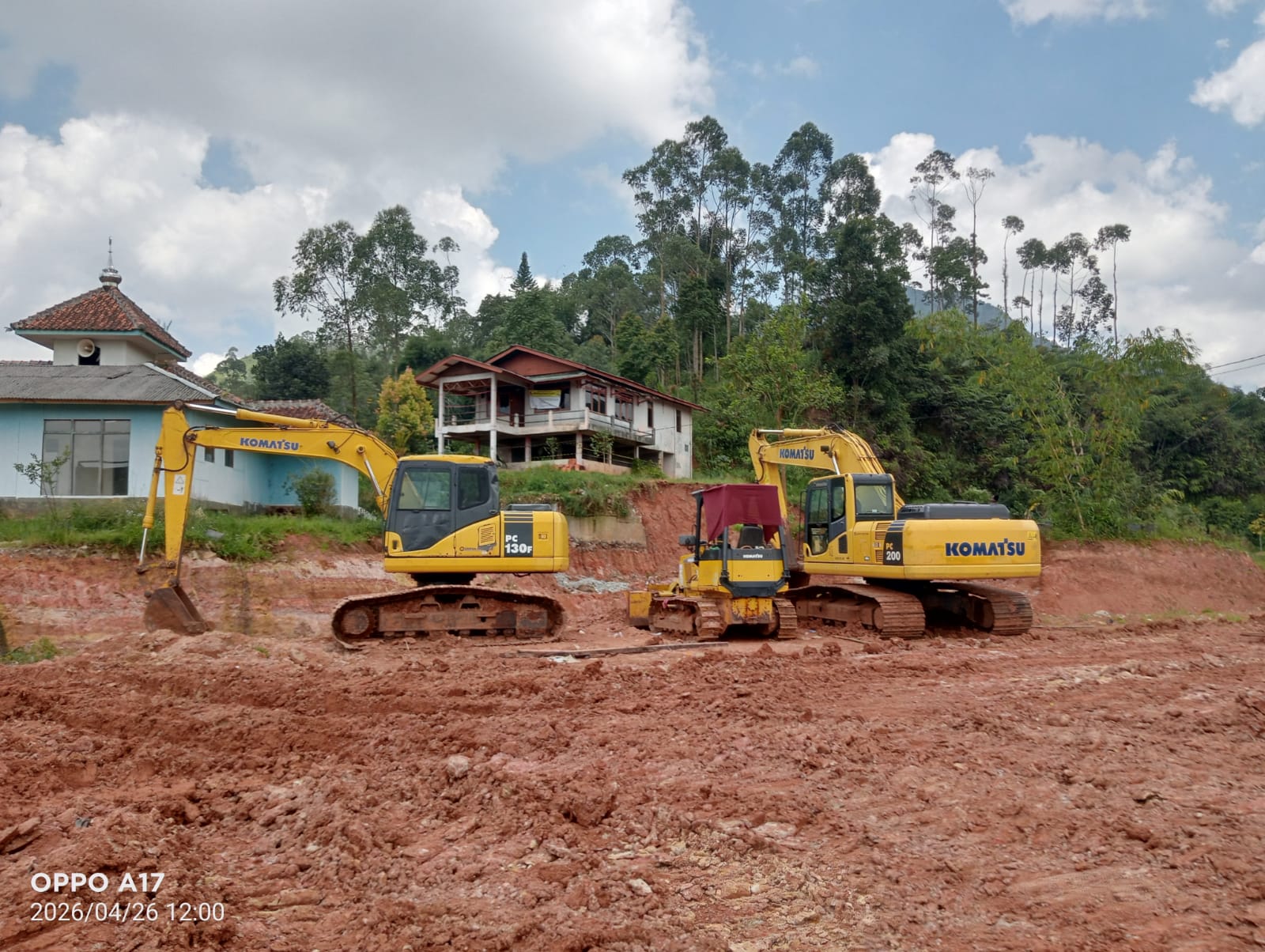 Berdasarkan hasil pemantauan, terdapat dua unit excavator (beko) dan satu unit bulldozer yang berada di area proyek. Informasi awal mengenai status alat tersebut diperoleh dari salah satu pekerja di lokasi yang menyebut bahwa sebagian alat yang terparkir merupakan milik Dinas Pekerjaan Umum dan Tata Ruang (PUTR) Kabupaten Bandung.
