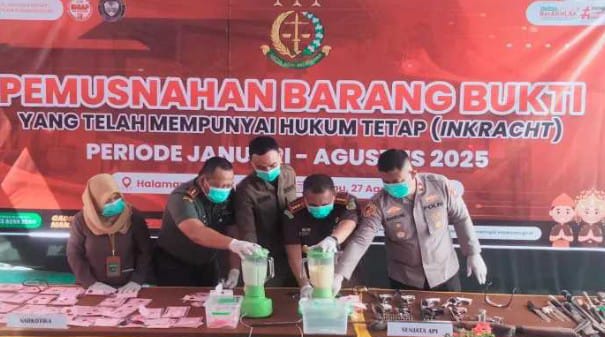 OKI SUMSEL |Lintas Rakyat| – Kejaksaan Negeri (Kejari) Kabupaten Ogan Komering Ilir (OKI) Gelar kegiatan Pemusnahan Barang Bukti yang telah mempunyai Hukum tetap (Inkracht) untuk Periode Januari-Agustus 2025