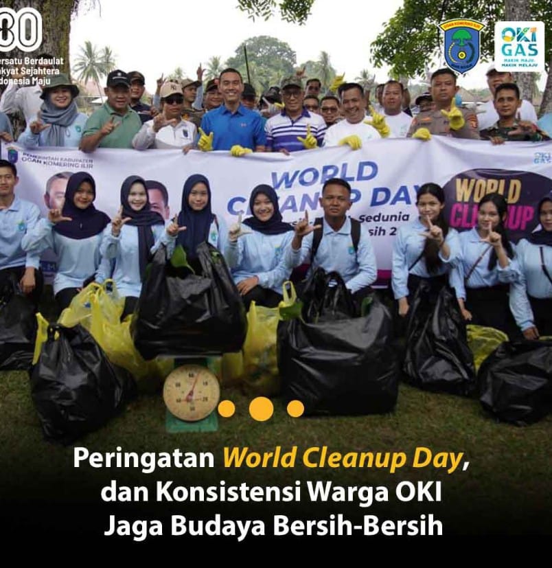 ‎Pemerintah Kabupaten Ogan Komering Ilir (OKI) memperingati World Cleanup Day (WCD) 2025 dengan menggelar aksi gotong royong massal serentak di berbagai titik wilayah OKI, Sabtu (20/9/2025). Tidak hanya sebagai agenda tahunan, momen ini sekaligus menjadi penguatan komitmen pemerintah dan masyarakat dalam membangun budaya bersih-bersih yang konsisten dilaksanakan dari rumah tangga, lingkungan kerja, hingga ruang publik.