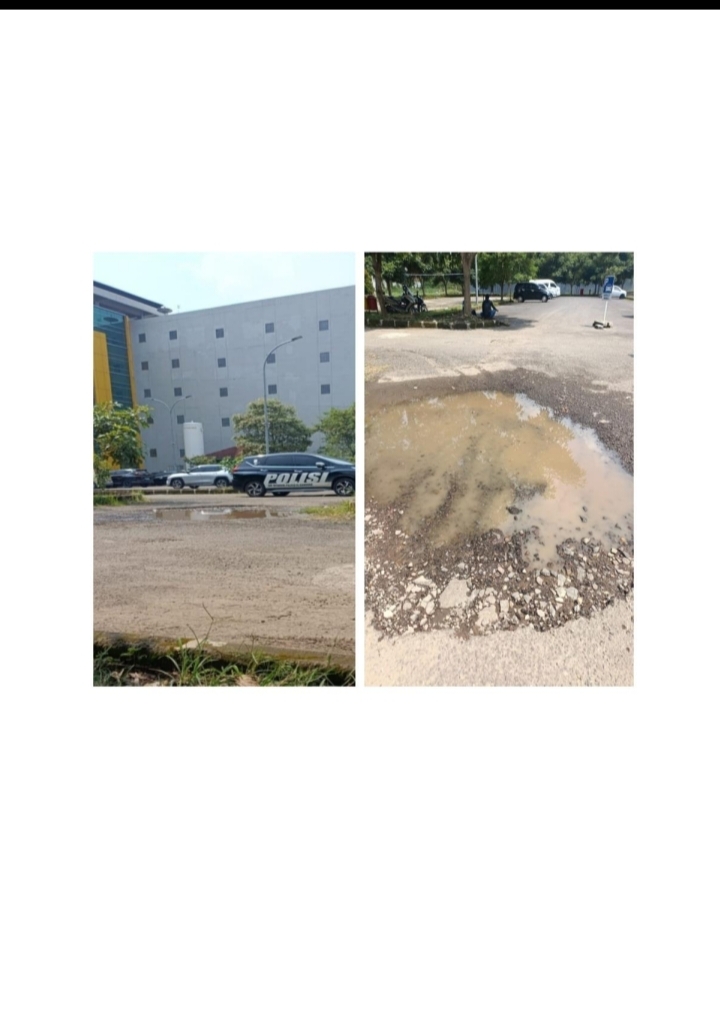 Hasil pantauan di lapangan menunjukkan akses jalan utama di area rumah sakit dipenuhi lubang besar yang menganga.